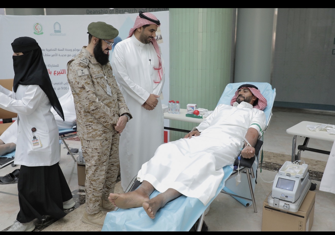 وشهدت الحملة إقبالاً واسعًا من أعضاء هيئة التدريس والموظفين والطلبة، حيث سادت أجواء من التعاون الإنساني والمبادرة الإيجابية وبلغ عدد المتبرعين 162 متبرع ، وسط إشراف طبي متكامل من فريق مدينة الأمير سلطان الطبية العسكرية لضمان سلامة المتبرعين وتطبيق أعلى معايير الجودة الصحية.