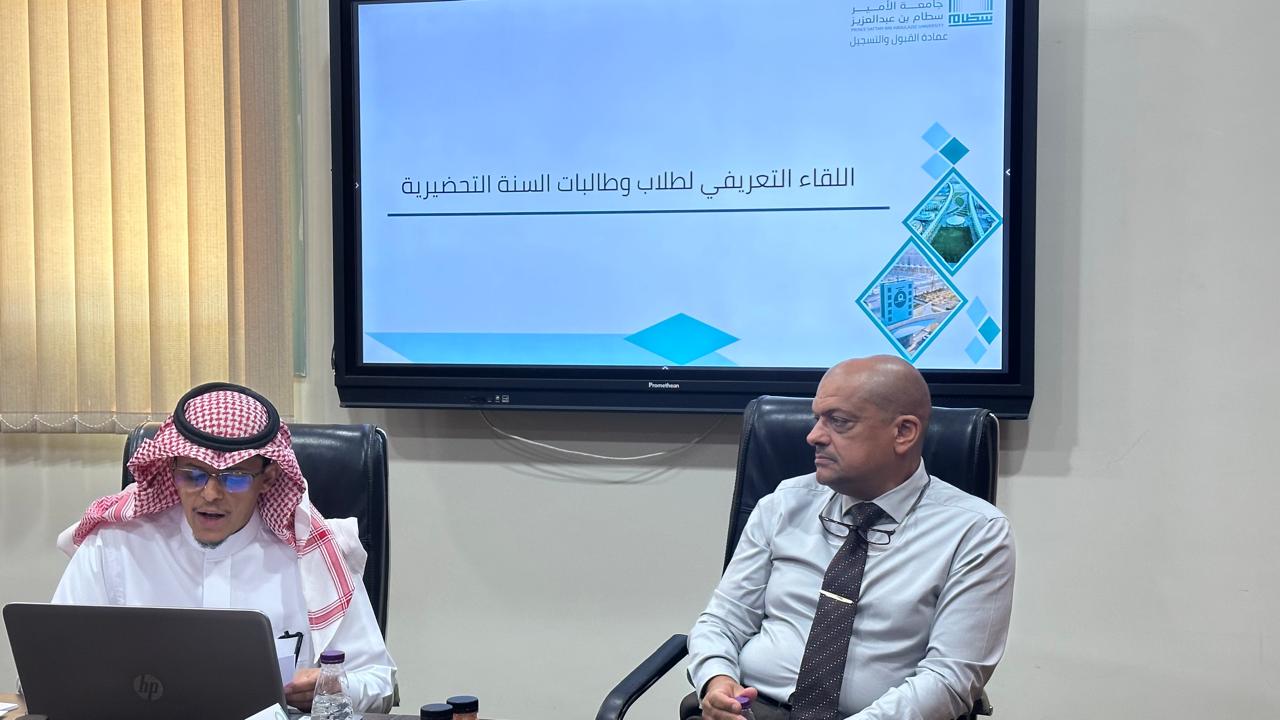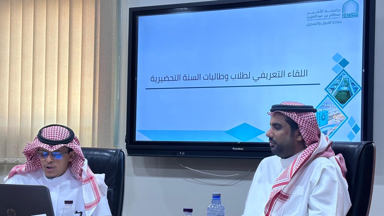 برعاية سعادة رئيس الجامعة أ.د. عبد الله بن عبد العزيز التميم، أقامت عمادة القبول والتسجيل ممثلة بالسنة التحضيرية في جامعة الأمير سطام بن عبد العزيز، اللقاء التعريفي لطلاب وطالبات السنة التحضيرية للعام الجامعي 1447هـ، وذلك يوم الأحد 1-3-1447 هـ الموافق 24-8-2025 م