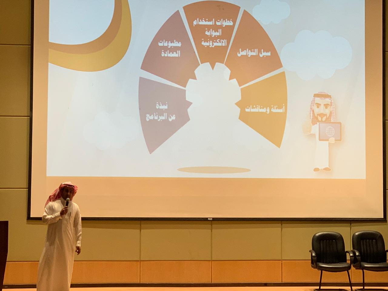 اختتمت يوم أمس الأربعاء الموافق 6/7/1440هـ فعاليات البرنامج التثقيفي لعمادة شؤون القبول والتسجيل، في كليات الجامعة للطلاب والطالبات، حيث قدم كلاً من سعادة وكيل العمادة للشؤون الفنية الدكتور هشام العبدالجبار وسعادة وكيل العمادة للفروع الدكتور ياسر الدوسري و سعادة المشرفة على قسم القبول والتسجيل الأستاذة هدى الجليفي، نبذة تعريفية عن أنشطة البرنامج التثقيفي في كافة كليات الجامعة للطلاب والطالبات.الجدير بالذكر أن البرنامج التثقيفي قام بتدشينه سعادة مساعد وكيل الجامعة للشؤون التعليمية والأكاديمية الدكتور مشاري العصيمي صباح يوم الأربعاء الموافق 8/6/1440هـ في بهو مبنى كلية العلوم والدراسات الإنسانية بحضور كلاً من سعادة عميد عمادة شؤون القبول والتسجيل الدكتور عبدالعزيز الصقر وسعادة وكيل العمادة للشؤون الفنية الدكتور هشام العبد الجبار وكافة منسوبي العمادة، ويهدف البرنامج التثقيفي لتعزيز الوعي بأنشطة عمادة شؤون القبول والتسجيل. وفي ختام الفعاليات قدم سعادة عمداء ووكلاء الكليات في الجامعة، شكرهم وتقديرهم لسعادة عميد شؤون القبول والتسجيل الدكتور عبدالعزيز الصقر على هذا البرنامج التثقيفي الهام المتعلق بأنشطة العمادة والذي شهد تفاعل العديد من الطلاب والطالبات مع أنشطة البرنامج.والتي تمثلت من خلال الأهداف المحددة للبرنامج وهي على النحو التالي:1-تدريب الطلاب ومساعدتهم على التعرف على كيفية الاستخدام الأمثل للبوابة الإلكترونية وتطبيق الجوال وتعريفهم بالخدمات الإلكترونية الجديدة.2-تطوير عمليات التسجيل من خلال قياس مدى رضا الطلاب عن الخدمات المقدمة من العمادة.3-استيفاء متطلبات مركز تقويم التعليم للمعيار الخامس الخاص بالخدمات الطلابية المقدمة من عمادة شؤون القبول والتسجيل .