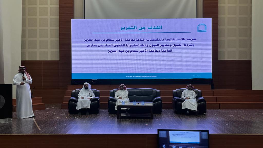 انطلاقاً من حرص جامعة الأمير سطام بن عبدالعزيز ممثلةَ بعمادة القبول والتسجيل على أهمية توعية طلاب وطالبات المرحلة الثانوية وتعريفهم بالجامعة قبل بدء التقديم للعام الجامعي 1445هـ، نظمت عمادة القبول والتسجيل صباح يوم أمس الثلاثاء 1444/11/24هـ الموافق 2023/6/13م، لقاءً تعريفياً لمدارس الجامعة الأهلية بعنوان (اللقاء التعريفي بجامعة الأمير سطام بن عبدالعزيز وكلياتها).