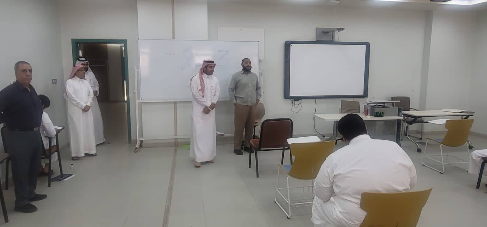 قام سعادة عميد القبول والتسجيل الدكتور هشام بن عبدالعزيز العبدالجبار صباح اليوم الخميس 26 / 11 / 1444هـ، بزيارة تفقدية لمتابعة سير الاختبارات النهائية لطلاب السنة التحضيرية للـفصل الدراسي الثالث للعام الجامعي 1444هـ، حيث كان في استقبال سعادته، سعادة وكيل العمادة لشؤون طلاب السنة التحضيرية الدكتور محمد عبده محزري، كما جال سعادته على لجان الاختبارات متابعاً آلية دخول وتنظيم الطلاب داخل اللجان، وسير الاختبارات بشكل عام.